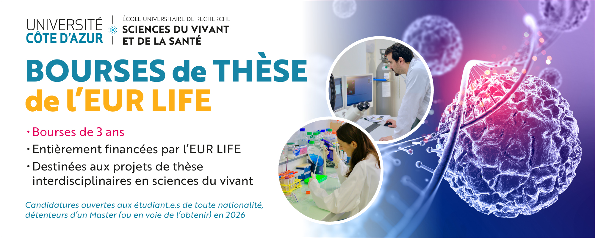 L'EUR LIFE ouvre un appel à projets de thèse interdisciplinaires en 2026, mêlant la biologie à d'autres disciplines scientifiques.