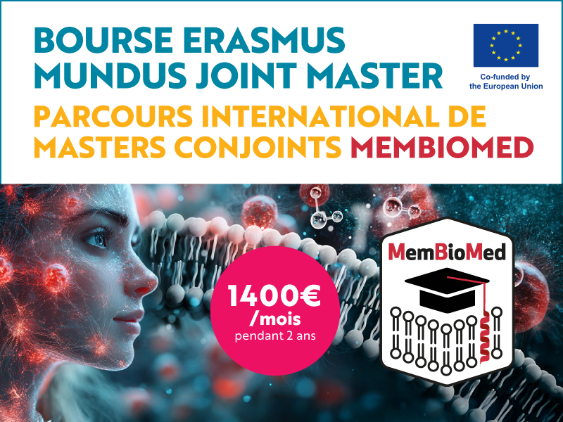 MemBioMed est un parcours international en 2 ans de Masters conjoints (spécialisé dans la recherche multidisciplinaire sur les biomembranes) qui propose chaque année des bourses de 1400€/mois pendant 24 mois à ses meilleurs candidats (de toutes nationalités). Le programme inclue des mobilités obligatoires dans les universités partenaires : Université Côte d'Azur, Gênes (Italie) et Osnabrück (Allemagne).
