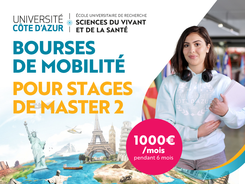 MemBioMed est un parcours international en 2 ans de Masters conjoints (spécialisé dans la biologie du vieillissement) qui propose chaque année des bourses de 1400€/mois pendant 24 mois à ses meilleurs candidats (de toutes nationalités). Le programme inclue des mobilités obligatoires dans les universités partenaires : Université Côte d'Azur, Coimbra (Portugal), Séville (Espagne), Cologne (Allemagne) et Paris Sorbonne.