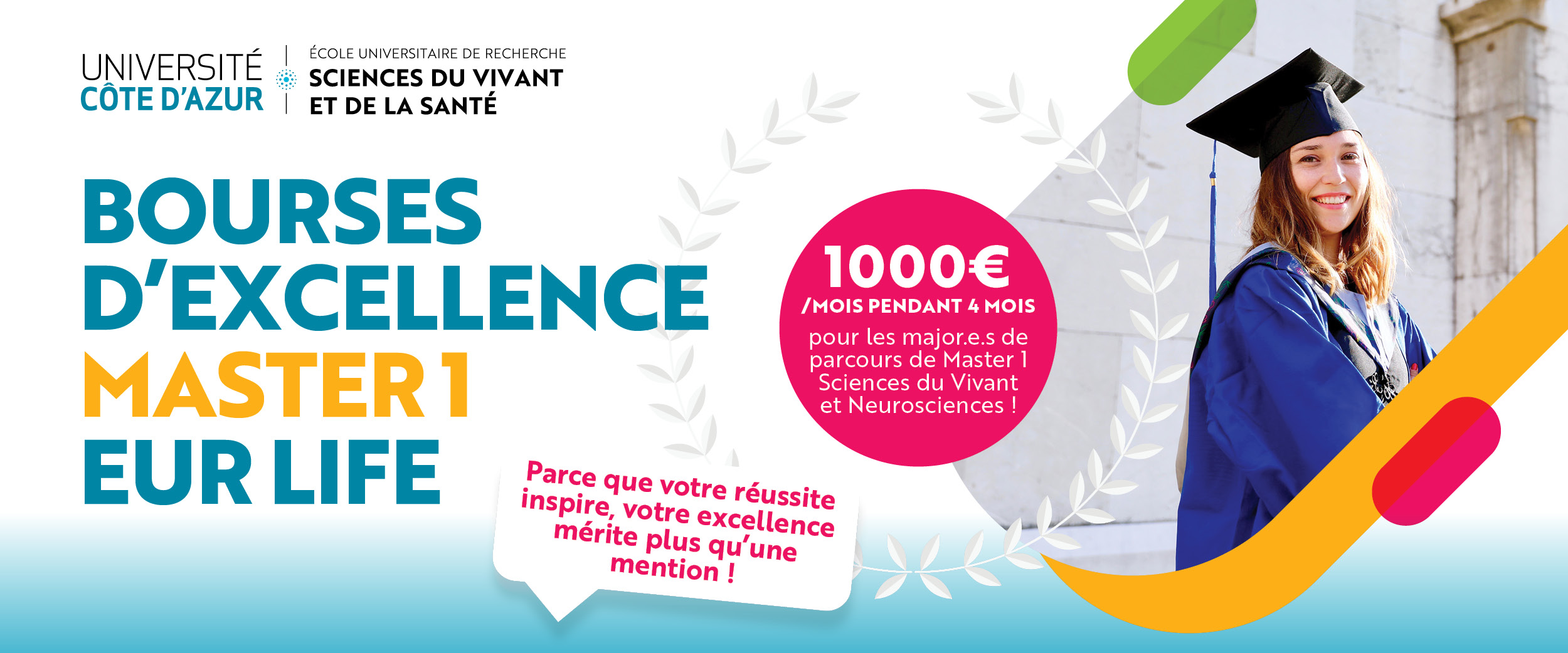 Chaque année, l’EUR LIFE récompense les étudiant.e.s qui terminent premier·ères de leurs parcours de Master 1 Science du Vivant et Master 1 Neurosciences avec des Bourses d'Excellences afin d'encourager l’engagement, la rigueur et la performance académique.